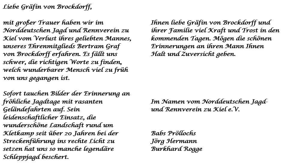 des NJRV zu Kiel und der Jagdreiterei hoch. Dafür danken wir Ihm sehr